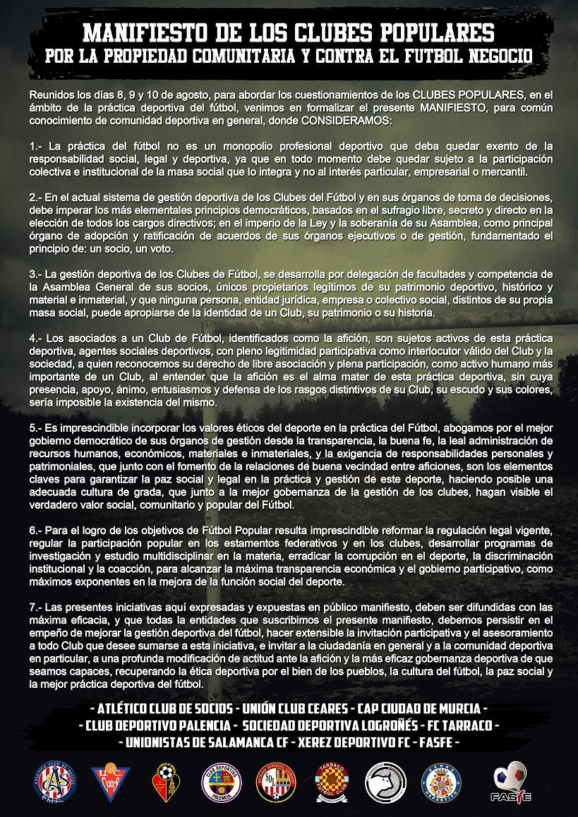 Manifiesto de los clubes populares por la propiedad comunitaria y contra el fútbol negocio.